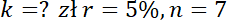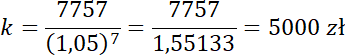 Oblicz kwotę wpłaconą, jeśli po 7 latach na lokacie jest 7757 zł:
