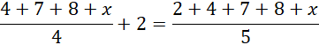 Do początkowej średniej arytmetycznej zestawu czterech liczb dodaj 2 i przyrównaj do średniej arytmetycznej zestawu pięciu liczb.