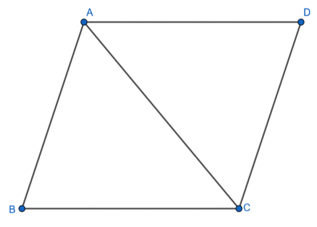 Wykaż, że przekątna równoległoboku dzieli go na dwa trójkąty przystające.