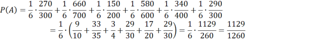 Wyznacz prawdopodobieństwo tego, że wylosowane zadanie należy rozwiązać bez użycia kalkulatora, jeśli zbiór zadań z matematyki jest podzielony na 6 rozdziałów. Na diagramie A przedstawiono liczbę zadań w poszczególnych rozdziałach, na diagramie B – liczbę zadań w poszczególnych rozdziałach, które należy rozwiązać korzystając z kalkulatora. Rzucamy kostką i wybieramy rozdział, którego numer jest równy liczbie wyrzuconych oczek, a następnie losujemy jedno zdanie z tego rozdziału