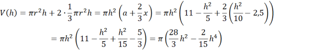 Ze wzoru na obwód trapezu wyznacz długość jego krótszej podstawy. Następnie skorzystaj z twierdzenia Pitagorasa i wyznacz długość jego ramienia i określ dziedzinę – wysokość i boki muszą być dodatnie. Następie oblicz jego objętość – zauważ, że powstanie funkcja zmiennej