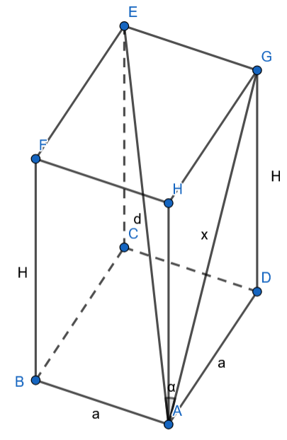 Oblicz objętość graniastosłupa prawidłowego czworokątnego, którego przekątna ma długość