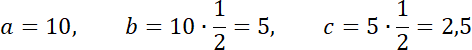 Skorzystaj z tego, że najdłuższa krawędź prostopadłościanu ma długość 10, a każda następna jest od niej o połowę krótsza i na tej podstawie oblicz ich długości, a następnie sumę wszystkich krawędzi prostopadłościanu oraz jego pole całkowite.