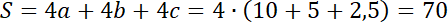Wyznacz sumę długości wszystkich krawędzi tego prostopadłościanu oraz jego pole powierzchni całkowitej, jeśli dany jest prostopadłościan, którego wymiary są kolejnymi wyrazami ciągu geometrycznego pierwszym wyrazie 10 i ilorazie