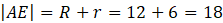 Zauważ, że długość boku AE to suma długości promienia r i promienia R.