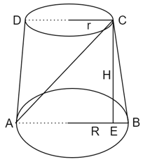 Oblicz cosinus nachylenia przekroju osiowego bryły do jednej z podstaw. Skorzystaj z funkcji trygonometrycznych w trójkącie prostokątnym ACE.