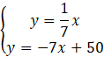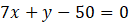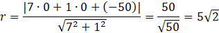 Skorzystaj ze wzoru na odległość punktu O=(0,0) od prostej 7x+y-50=0. Będzie to długość promienia r.