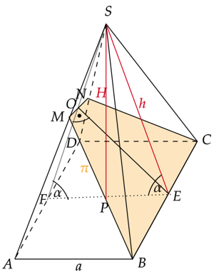 Skorzystaj z twierdzenia Pitagorasa w trójkącie PSE i oblicz długość boku PS, czyli wysokość ostrosłupa.