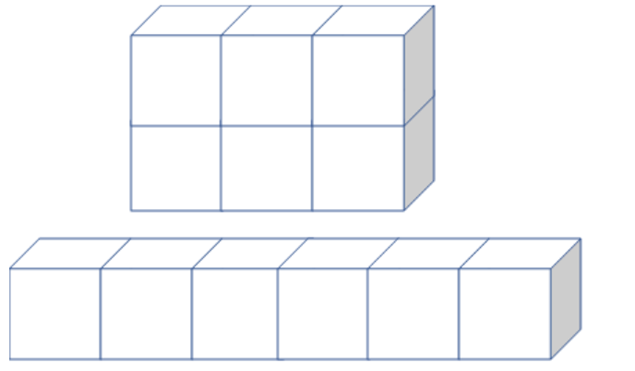 Wojtek sześcienne kostki może ułożyć tylko na dwa sposoby przedstawione na rysunku. Pamiętaj, że podawaniu wymiarów powstałych brył zapisuje się poprzez napisanie długości i szerokości ich podstaw oraz wysokości każdej z brył.