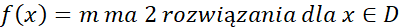 Odczytaj z wykresu własności funkcji. Na wykresie dziedzina funkcji to zbiór wszystkich x-ów dla których funkcja istnieje, a zbiór wartości to zbiór wszystkich y-ów. Miejscem zerowym funkcji jest taki argument x, dla którego wykres przecina oś x. Liczbę rozwiązań równania f(x)=m w zależności od warunku m możesz określić oceniając ile razy pozioma prosta y=m przecina wykres f(x).