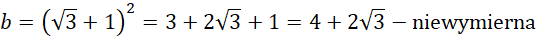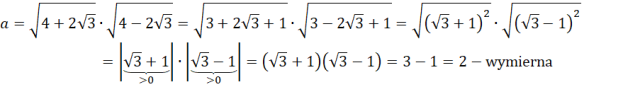 przedstaw w najprostszej postaci. Aby to zrobić liczbę 4 pod każdym pierwiastkiem rozbij na sumę liczb 3 i 1. Pod pierwszym pierwiastkiem zauważ wzór skróconego mnożenia na kwadrat sumy: