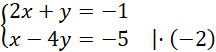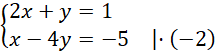 Nie ma współczynników o przeciwnych znakach, więc przekształcamy układ równań tak, by do takiej sytuacji dochodziło: