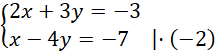Nie ma współczynników o przeciwnych znakach, więc przekształcamy układ równań tak, by do takiej sytuacji dochodziło: