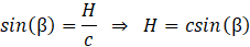 Graniastosłup jest pochyły. Z zależności trygonometrycznych wyznacz długość wysokości (H), a pole równoległoboku przedstawia się wzorem