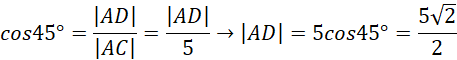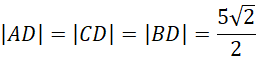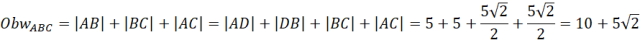 Z własności trójkątów prostokątnych 45°, 45° możemy zapisać zależności: