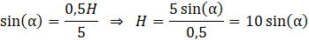 Z zależności trygonometrycznych wyznacz długość wysokości graniastosłupa (H) oraz krawędź podstawy (a). Następnie oblicz objętość bryły.