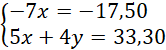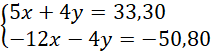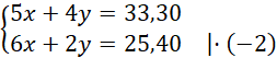 Rozwiązujemy układ równań metodą przeciwnych współczynników: