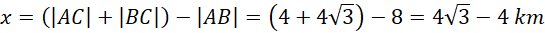 Musisz za pomocą funkcji trygonometrycznych zapisać wzory na odcinki objazdu oraz porównać otrzymane wartości.