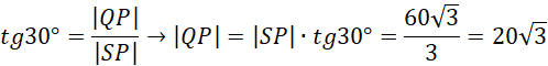 Dla podanego trójkąta SPQ możemy zapisać funkcję trygonometryczną: