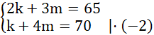 Rozwiązujemy układ równań metodą przeciwnych współczynników: