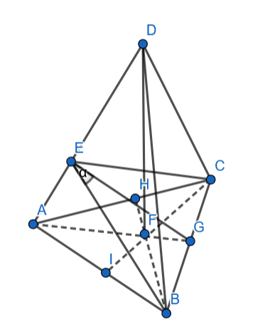Oblicz objętość ostrosłupa, jeśli w ostrosłupie prawidłowym trójkątnym krawędź podstawy ma długość . Ściany boczne są trójkątami ostrokątnymi. Miara kąta między sąsiednimi ścianami bocznymi jest równa .