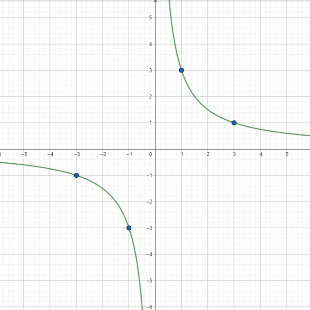 Wykres funkcji postaci przechodzi przez punkt (1, a), więc przechodzi przez punkt (1, 3). Oblicz jeszcze kilka punktów, przez które przechodzi np. (3, 1), (-3, -1), (-1, -3).
