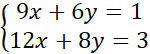 Rozwiązano równanie metodą przeciwnych współczynników. Metoda przeciwnych współczynników polega odpowiednim przemnożeniu obu stron danego równania tak, aby po zsumowaniu obydwu równań, wyrażenia podobne się uprościły. Otrzymano sprzeczność, co świadczy o tym, że podany układ równań nie ma rozwiązań.