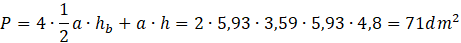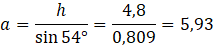 W tym zadaniu należy obliczyć objętość i pole powierzchni całkowitej ostrosłupa, którego podstawą jest romb o kącie ostrym 𝛼 = 54°. W ten romb wpisano koło o promieniu 2,4 dm, a ściany boczne tworzą z płaszczyzną podstawy kat 𝛽 = 48°. Wynik podaj z dokładnością do 1 dm3/1 dm2.