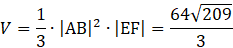 W tym zadaniu należy obliczyć objętość ostrosłupa ABCDE, jeśli jego podstawą jest kwadrat ABCD, punkt F jest środkiem krawędzi AD, odcinek EF to wysokość ostrosłupa i dodatkowo |𝐴𝐸| = 15 i |𝐵𝐸| = 17.