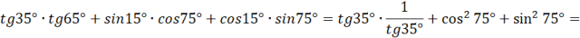 Wartość wyrażenia tg35° ∙ tg65° + sin15° ∙ cos75° + cos15° ∙ sin75° jest równa C. 2