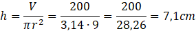 Jogurty sprzedawane przez pewnego producenta miały pojemność 200 g i mieściły się w pojemnikach w kształcie walca o średnicy 6 cm. W tym zadaniu musisz obliczyć wysokość tych pojemników, podając wynik z dokładnością do 0,1 cm oraz przyjmując, że 1 g jogurtu ma objętość 1 ml.