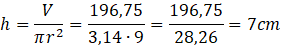 Jogurty sprzedawane przez pewnego producenta miały pojemność 200 g i mieściły się w pojemnikach w kształcie walca o średnicy 6 cm, jednak zostały zmienione na nowe o pojemności 180 g. Nie została zmieniona średnica pojemników, ale na dnie pojawiło się wgłębienie o kształcie półkuli i średnicy 4 cm. W tym zadaniu musisz obliczyć wysokość nowego pojemnika, podając wynik z dokładnością do 0,1 cm.