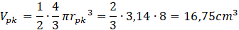 Najpierw oblicz objętość półkuli, korzystając ze wzoru: