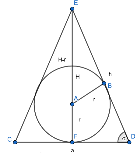 Skorzystaj z funkcji tangens i cosinus w trójkątach prostokątnych, aby wyznaczyć długość krawędzi podstawy, a następnie wysokość ściany bocznej. Na koniec wyznacz pole całkowite bryły.