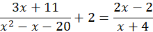 Wyznacz dziedzinę, wiedząc, że mianownik musi być różny od zera. Sprowadź ułamki do wspólnego mianownika. Przyrównaj do siebie liczniki, wiedząc, że ułamki o tych samych mianownikach są równe wtedy i tylko wtedy, gdy mają równe liczniki. Wyznacz i sprawdź, czy należą do dziedziny.