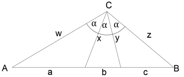 , jeśli kąt ACB został podzielony na trzy równe części.
