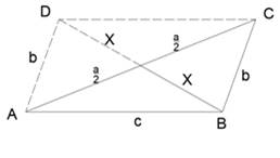 Poprowadź kolejne dwie środkowe y i z, z wierzchołków A i C i analogicznie je przedłuż. Skorzystaj z nierówności w trójkącie:
