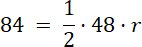 Wyznacz promień okręgu wpisanego w trójkąt, korzystając z wzoru na pole trójkąta, zależnego od obwodu trójkąta i promienia okręgu wpisanego w ten trójkąt.