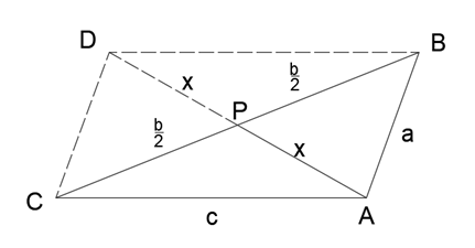 Udowodnij, że w trójkącie połowa sumy długości boków AB i AC jest większa niż środkowa trójkąta opuszczona z wierzchołka A.