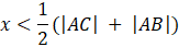 Środkowa jest mniejsza od połowy sumy boków AC i AB.