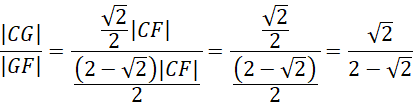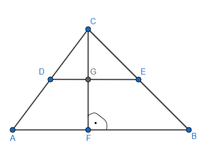 Wykonaj rysunek pomocniczy. Wypisz pary kątów odpowiadających. Trójkąt DEC jest podobny do trójkąta ABC z cechy kkk. Wyznacz długość odcinka |GF| w zależności od |CF| i następnie wyznacz stosunek, w jakim prosta DE podzieliła wysokość CF.