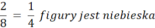 Policz, ile jest czerwonych elementów, ile jest niebieskich elementów oraz ile jest wszystkich elementów. Przedstaw w postaci ułamka i pomnóż przez 100%