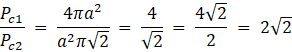 Znajdź stosunek pól powierzchni bryły, którą otrzymano poprzez obrócenie kwadratu wokół jego boku do takiej, którą otrzymano poprzez obrócenie tego kwadratu wokół jego przekątnej.
