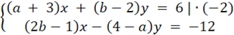 W tym zadaniu należy znaleźć wartości a i b dla których układ równań jest nieoznaczony.