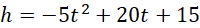 Aby określić wysokość z jakiej rzucono piłkę musimy obliczyć wysokość w czasie