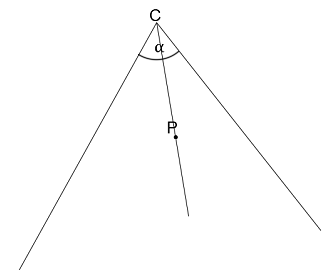 Skonstruuj trójkąt na podstawie dowolnego kąta wypukłego, tak punkt P należał do kąta ale nie do ramion kąta i był środkiem ciężkości tego trójkąta. Dwa wierzchołki mają należeć do ramion kąta, trzecim wierzchołkiem ma być wierzchołek narysowanego kąta.