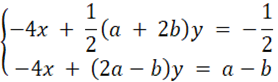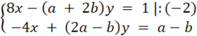 W tym zadaniu należy znaleźć wartości a i b dla których układ równań jest nieoznaczony.