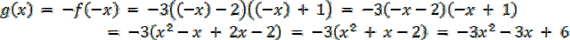 . W tym zadaniu musisz napisać wzór funkcji g, której wykres otrzymamy przekształcając wykres funkcji f przez symetrię środkową względem punktu O(0, 0). Oblicz miejsca zerowe i współrzędne punktu przecięcia wykresu funkcji g z osią OY (o ile istnieją).