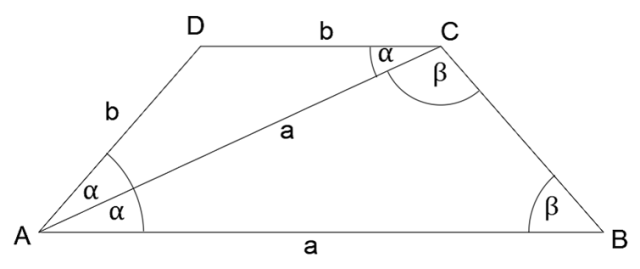 Przekątna dzieli trapez na dwa trójkąty równoramienne, więc: