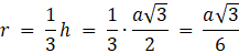 Dany jest pierścień oparty na okręgach wpisanym i opisanym na trójkącie równobocznym. Bok trójkąta ma długość a. Udowodnij, że pole tego pierścienia jest czterokrotnie mniejsze niż pole koła o promieniu długości równej długości boku trójkąta.